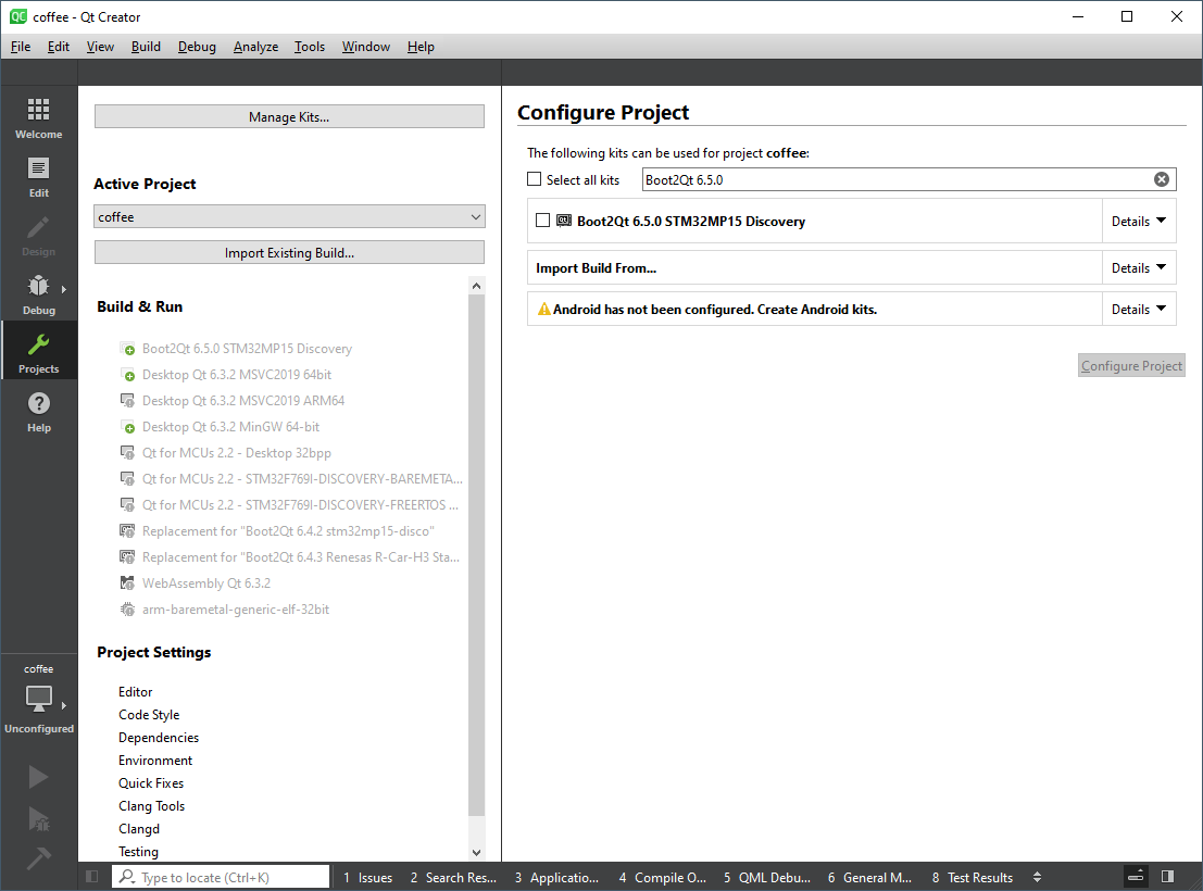 - Creating a project in Qt Creator and utilizing the ready-made Qt Board Support Package (QBSP) for the STM32MP1 device.