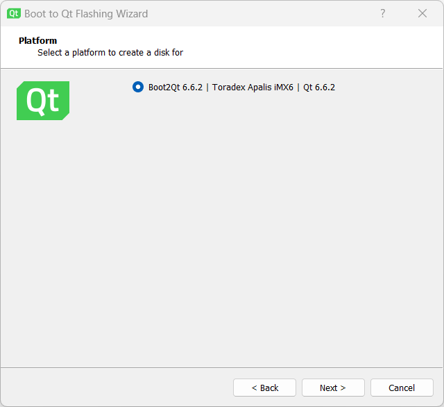 Alternatively you can flash the Boot to Qt image directly to the device's internal eMMC flash memory: