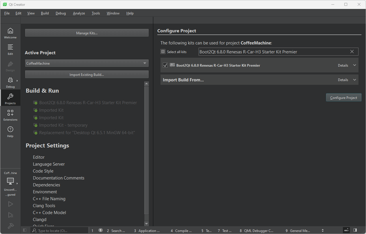 Configuring and building an application in Qt Creator