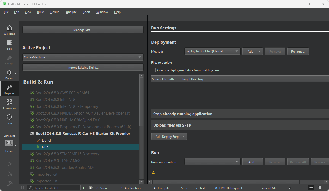 Note: Qt Creator uploads the application over the IP network, so the Renesas R-Car device has to be in the same network as your development host PC.