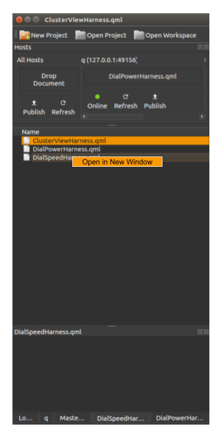 Later in the project, you may want to test your UI code on a device. For this, you can combine QML Live Bench with QML Live Runtime. This combination provides you a default QML renderer to run on the device and a small remote application on the desktop to control it.