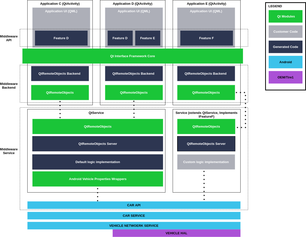 Qt IF Generator Extensions allows building a middleware layer for accessing Android Automotive Vehicle Properties. It makes use of tools and core APIs provided by the Qt Interface Framework project. It also delivers additional templates that can be used to generate additional project types: