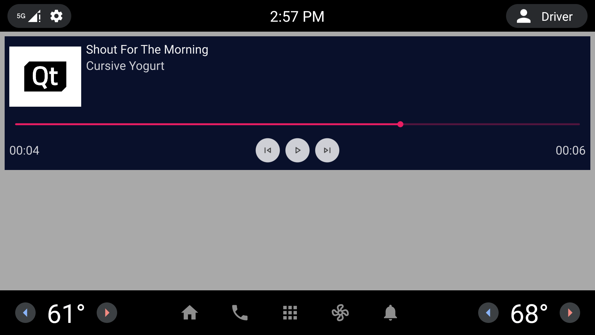 This example demonstrates the usage of Qt Media Session API to control media sessions on Android Automotive.
