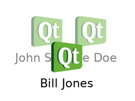 ListModel { ListElement { name: "Bill Jones" icon: "qtlogo.png" } ListElement { name: "Jane Doe" icon: "qtlogo.png" } ListElement { name: "John Smith" icon: "qtlogo.png" } }