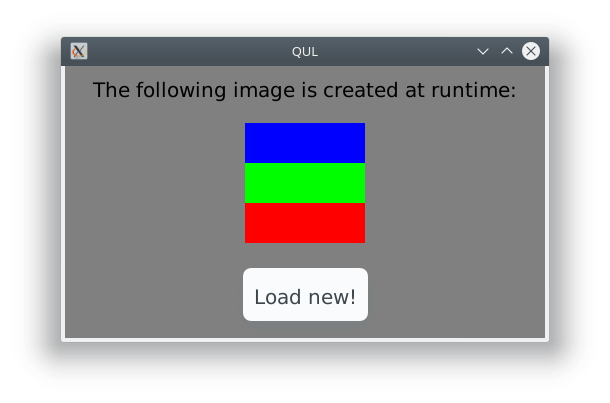 この例では、Qul::ImageProvider とQul::Image を使って、実行時に画像を作成して表示する方法を示します。