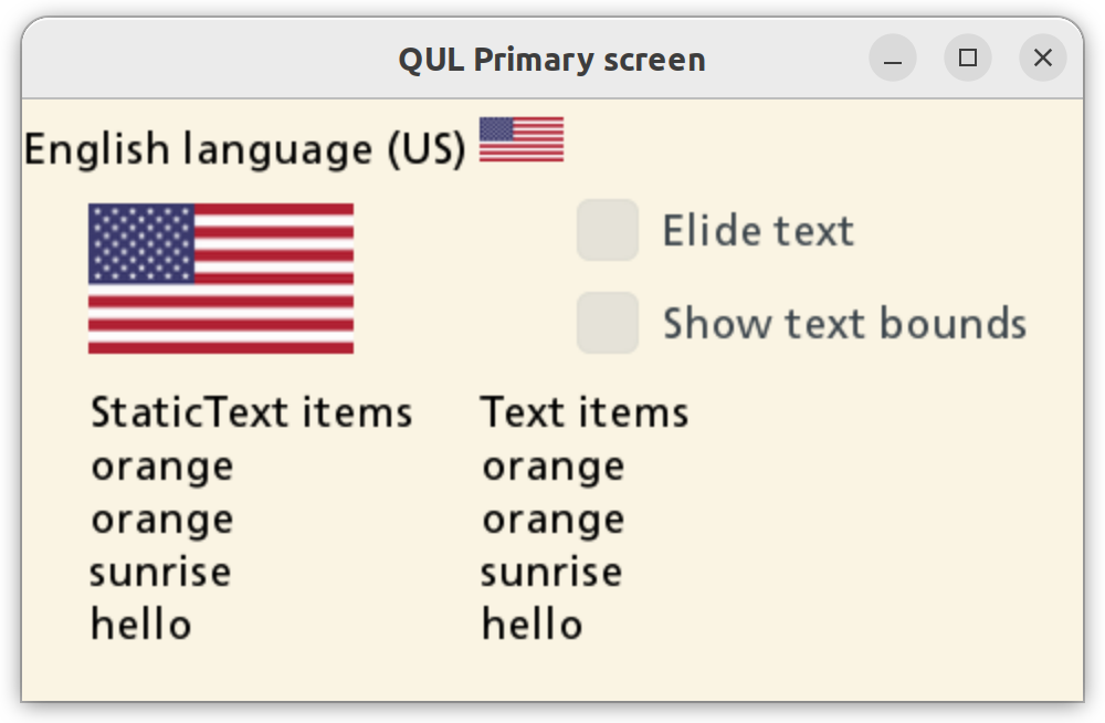 StaticText { width: root.width topPadding: 8 textFormat: Text.StyledText text: qsTr("English language (US) <img src=\"usa-flag-small-icon.png\" width=\"38\" height=\"20\">") }