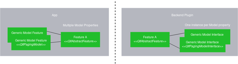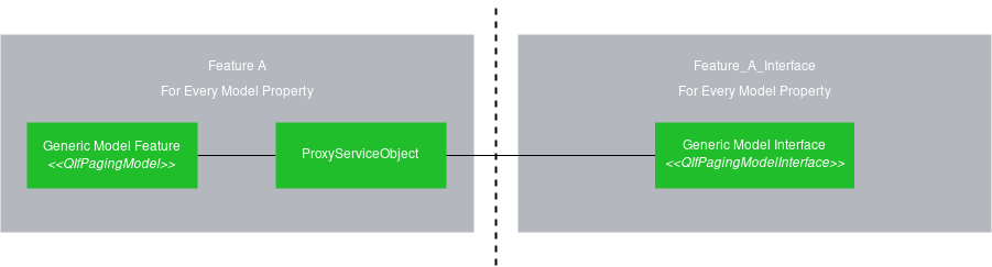To implement this concept, we use the QIfProxyServiceObject to connect the QIfPagingModel instance provided with the correct back-end interface instance.