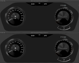 Before we start the actual middleware integration, let's take a look at the existing Instrument Cluster QML code and all the features it supports: