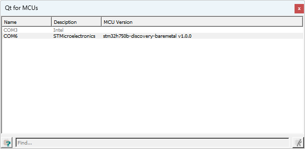 The Qt for MCUs window has a Discover Qt for MCUs devices button