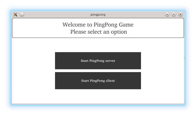 At the beginning, the user selects the role. One device acts as a server and the second one as a client. After selecting the role, adjustments to the screen size are done (two devices might have different screen sizes). The server side starts a service named "PingPong server".