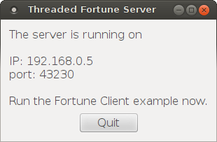 The Threaded Fortune Server example shows how to create a server for a simple network service that uses threads to handle requests from different clients. It is intended to be run alongside the Fortune Client example.