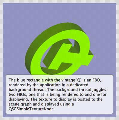 Shows how to use FramebufferObjects in a thread together with Qt Quick.