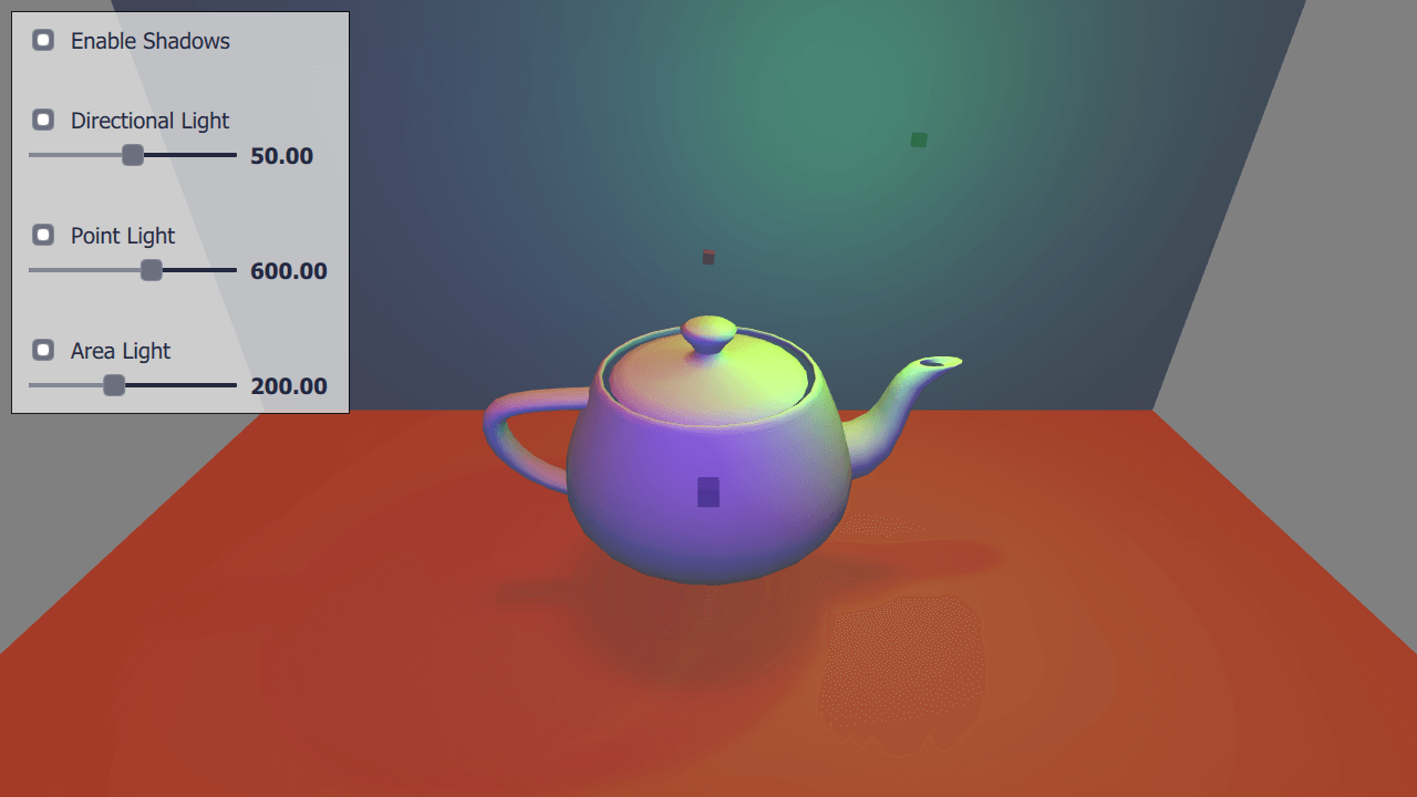 From the settings panel user can then enable shadows and control visibility and brightness of each light separately.