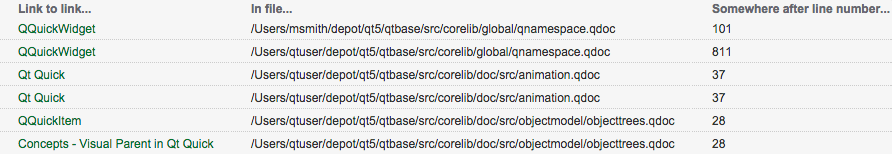 Note: The line number will normally refer to the first line of the comment where QDoc saw the link.
