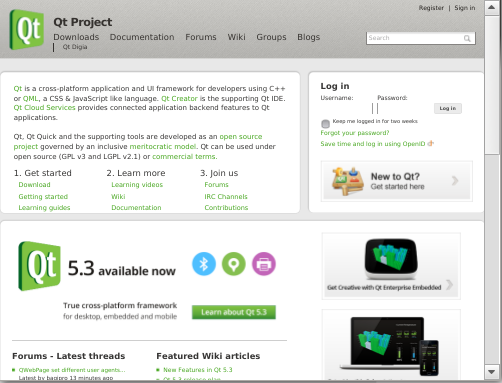 The following example loads a web page, responds to session history context, and intercepts requests for external links. It also makes use of ScrollView from Qt Quick Controls to add scroll bars for the content area.