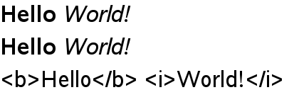 TextEdit { width: 240 text: "<b>Hello</b> <i>World!</i>" font.family: "Helvetica" font.pointSize: 20 color: "blue" focus: true }