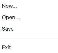 import QtQuick 2.6 import QtQuick.Controls 2.1 Menu { id: menu MenuItem { text: qsTr("New...") } MenuItem { text: qsTr("Open...") } MenuItem { text: qsTr("Save") } MenuSeparator { padding: 0 topPadding: 12 bottomPadding: 12 contentItem: Rectangle { implicitWidth: 200 implicitHeight: 1 color: "#1E000000" } } MenuItem { text: qsTr("Exit") } }