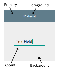 Foreground | Specifies the default Material foreground color. The value can be any color, or one of the pre-defined Material colors, for example "Brown". |