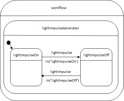 </state>The lightImpulseGenerator contains two child states: lightImpulseOn and lightImpulseOff, with only one active at a time.