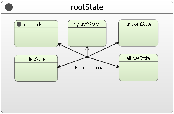 // States QState *rootState = new QState; QState *ellipseState = new QState(rootState); QState *figure8State = new QState(rootState); QState *randomState = new QState(rootState); QState *tiledState = new QState(rootState); QState *centeredState = new QState(rootState);