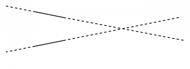 Describes the intersection between two lines.