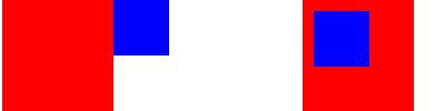 The example below displays a large red rectangle and a small blue rectangle, side by side. When the blueRect is clicked, it changes to the "reparented" state: its parent is changed to redRect and it is positioned at (10, 10) within the red rectangle, as specified in the ParentChange.