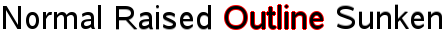 Text.Sunken | Row { Text { font.pointSize: 24; text: "Normal" } Text { font.pointSize: 24; text: "Raised"; style: Text.Raised; styleColor: "#AAAAAA" } Text { font.pointSize: 24; text: "Outline";style: Text.Outline; styleColor: "red" } Text { font.pointSize: 24; text: "Sunken"; style: Text.Sunken; styleColor: "#AAAAAA" } } |