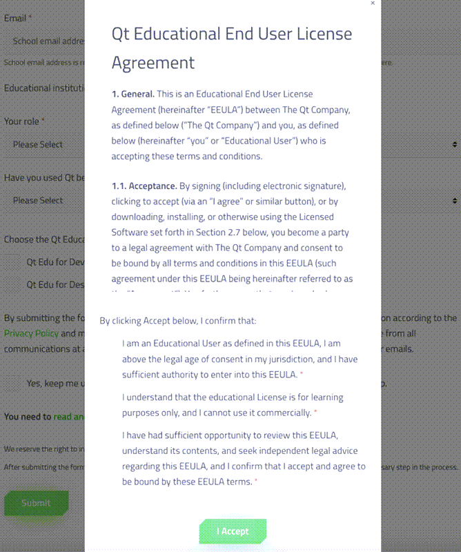 1. Apply for Qt Educational license
