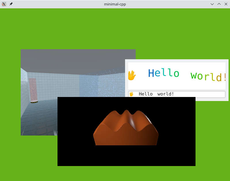 Minimal CPP is a minimalistic compositor example implementing a complete Qt Wayland Compositor using C++. The C++ API of QtWaylandCompositor is low-level and intended for specialized applications, such as supporting hardware features, or if Qt Quick is not available. The QML API offers more convenience and functionality. For comparison, the Minimal QML example implements more functionality with 30 lines of QML than this example does in 300+ lines.