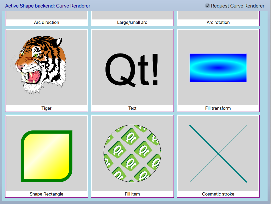 This example demonstrates the usage of the Shape type in Qt Quick. Shapes allow efficiently rendering stroked and filled lines, curves, and arcs in Qt Quick scenes.