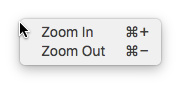 Menu { id: zoomMenu MenuItem { text: qsTr("Zoom In") shortcut: StandardKey.ZoomIn onTriggered: zoomIn() } MenuItem { text: qsTr("Zoom Out") shortcut: StandardKey.ZoomOut onTriggered: zoomOut() } }