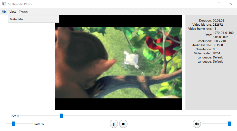 This example demonstrates a simple multimedia player that can play audio and video files using various codecs.